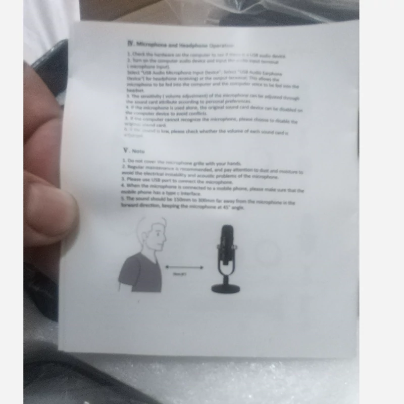 یک میکرفون کاملا اقتصادی و با کیفیت همراه با پایه طبق عکس برای اجراهاای لایو اینستاگرامی وصل مستقیم به موبایل یا برای کار در استودیو و خوانندگی ددارای یک یک اکو روی خود میکروفون که در احرای لایو شما را بی نیاز از میکسر می نماید دارای دکمه ولم و اکو روی. خود بنده میکروفون به همراه تبدیل یو اس بی به تایپ سی و وسایلی که در عکس مشخص شده است