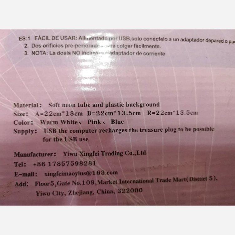 مواد: لوله نئون نرم و پس زمینه پلاستیکی اندازه: a = 22cm*18cm b = 22cm*13.5cm r = 22cm*13.5cm رنگ: سفید گرم رنگ آبی عرضه: USB رایانه پلاگین گنج را شارژ می کند تا امکان پذیر باشد برای استفاده USB سازنده: شرکت Trading Yiwu Xingfei (بار آمازون )